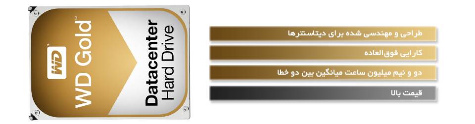وسترن دیجیتال، استانداردی عجیب را برای همراه با این نسل معرفی کرده است؛ نسل طلایی برای مدیریت کردن بازدهی برابر با 550 ترابایت در هر سال ساختهشده است. این مقدار بیشترین میزان کارکرد برای هاردهای 3.5 اینچی است. با نسل طلایی میتوانید اطمینان صددرصدی از کارایی داشته باشید. این اطمینان با دانستن اینکه میانگین زمان تعیینشده بین دو خطای این هارد چیزی در حدود 2.5 میلیون ساعت است که در مقایسه با نسل مشکی و قرمز حرفهای دو برابر شده است. این دلایل پرداخت مبلغ بیشتری برای خرید این هارد را توجیه میکنند. توصیه میشود اگر واقعا سروری با لود کاری خیلی بالا دارید از نسل طلایی استفاده کنید در غیر این صورت از نسلهای مشکی یا قرمز حرفهای استفاده کنید که قیمت بهمراتب کمتری در مقایسه با این نسل دارند. در حال حاضر این هاردها با ظرفیت بین چهار تا ده گیگابایت عرضه میشوند و احتمالا به زودی این نسل از هاردها با ظرفیتهای بیشتر عرضه خواهد شد.